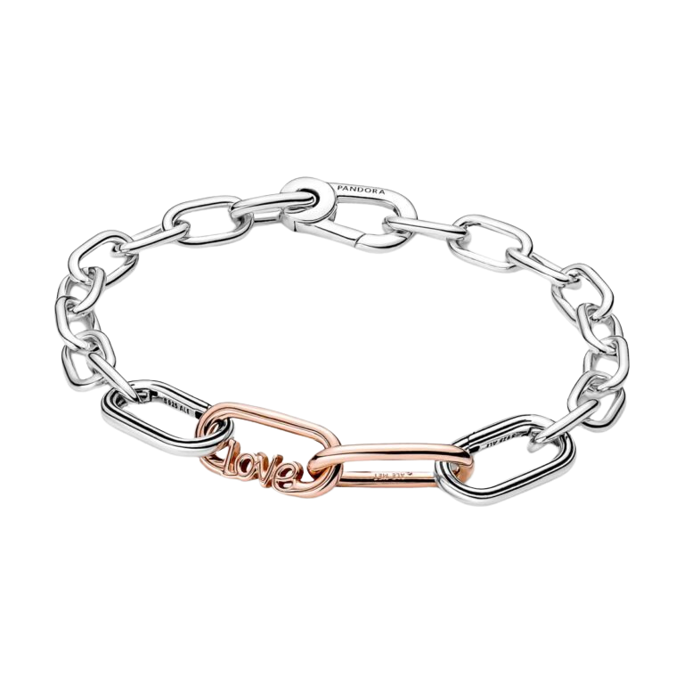 Lleva símbolos de positividad allá donde vayas con este Link Palabra Love de Pandora ME. Este link doble con recubrimiento de oro rosa de 14k se presenta con un acabado pulido y la palabra “love” (amor, en español) en letras manuscritas, como recordatorio constante de amarte a ti misma y a todos aquellos/as que iluminan tus días. Eleva el significado de tu look agregando este link palabra entre conectores en tus pulseras de eslabones, collares o aros. Consejo de estilo: un link doble palabra tiene la misma longitud que un eslabón decorativo, un doble o cuatro eslabones pequeños, lo que ofrece infinitas posibilidades de estilo.