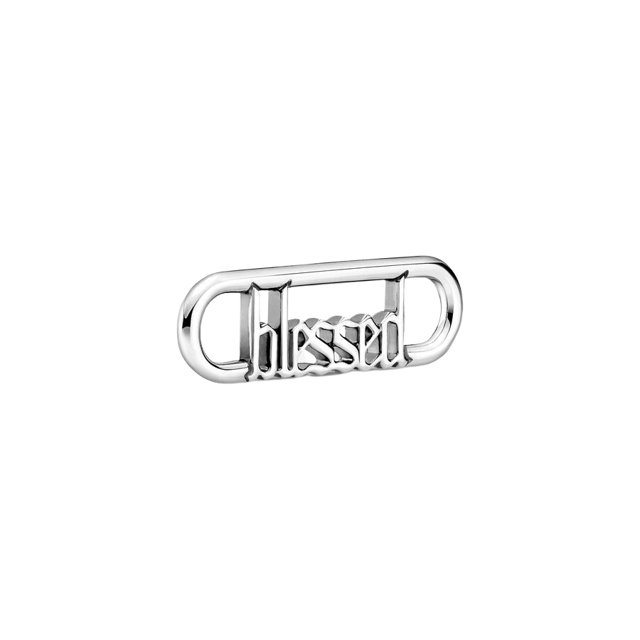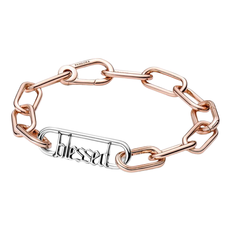 Muestra tu gratitud allá donde vayas con este Link Palabra Blessed Pandora ME. Este link en plata de primera ley representa la palabra “blessed” (bendito sea) en letras góticas. Lleva el tuyo como recordatorio de que dentro de ti tienes todo lo que puedes necesitar. Crea tu propia joya agregando este link de palabra entre conectores en tus pulseras de cadena de eslabones, collares o pendientes. Consejo de estilo: un link de palabra tiene la misma longitud que un link doble o cuatro links pequeños, lo que ofrece infinitas combinaciones diferentes. Si quieres personalizarlo aún más, puedes añadirle cualquier medallón con cierre de click. ¡Tienes infinitas posibilidades! *Recuerda las joyas de Pandora Me solo son compatibles con la Colección de Pandora ME.