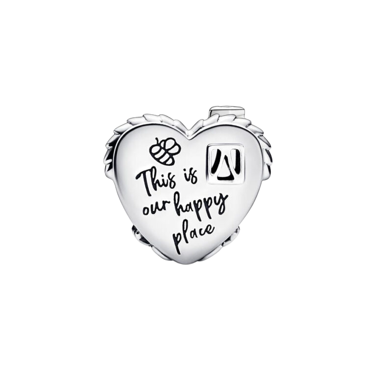 Celebra el calor del dulce hogar con nuestro Charm Corazón Dulce Hogar. Acabado a mano en plata de primera ley, esta joya representa una casa con forma de corazón con ventanas, puertas y el detalle de una mariposa grabada que evoca el sentimiento de un hogar lleno de alegría. En la parte trasera aparece el siguiente grabado: "This is our happy place" (Este es nuestro feliz hogar). Lleva este charm para recordarte a ti misma que donde quiera que estés, no hay ningún otro lugar donde te sientas como en casa.