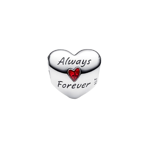 Celebra un amor eterno con el Charm Corazón Mickey Mouse y Minnie Mouse de Disney. El amor de Mickey y Minnie cobra vida en este charm con forma de corazón, que presenta la silueta del icónico dúo en esmalte de color negro, sentados espalda contra espalda y agarrados de la mano. En el otro lado se presenta la inscripción "Always + Forever" (Siempre + Para siempre) y un corazón decorado con esmalte de color rojo con el "+" visible a través del esmalte. Un regalo lleno de amor para un fan especial de Disney.