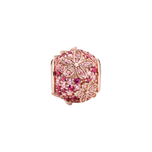 Si te gustan las margaritas y el color rosa, te encantará este Charm Margarita en Pavé Rosa. Este charm de flores se presenta con cristales sintéticos de color rosa y cereza de distintos tamaños así como margaritas elevadas y está acabado a mano con un recubrimiento de oro rosa de 14 K. Este llamativo charm de pavé se inspira en las margaritas, que simbolizan la prosperidad en la adversidad y celebra la libertad. Póntelo para dar un toque de color a tu estilo o bien, regálalo a alguien que dé chispa a tu vida.