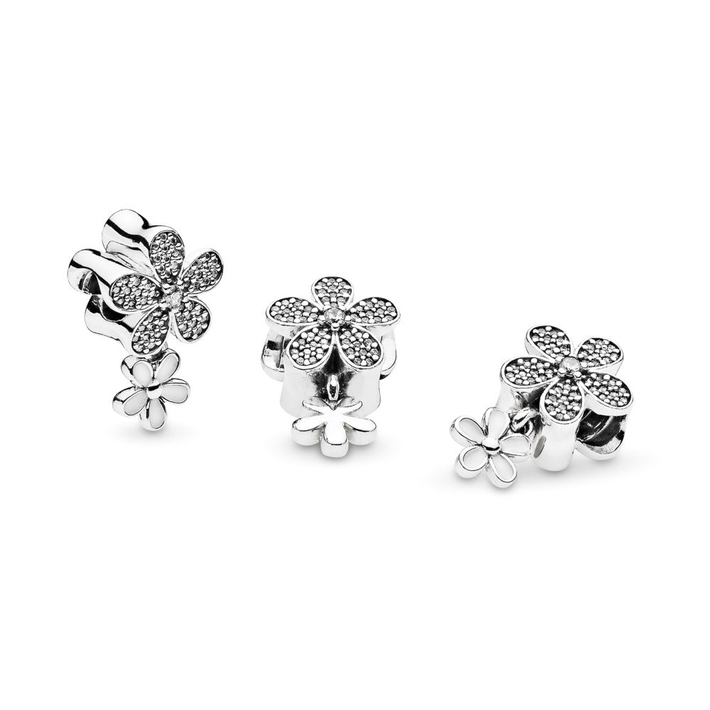 Par de margaritas deslumbrantes, esmalte blanco y cz clara