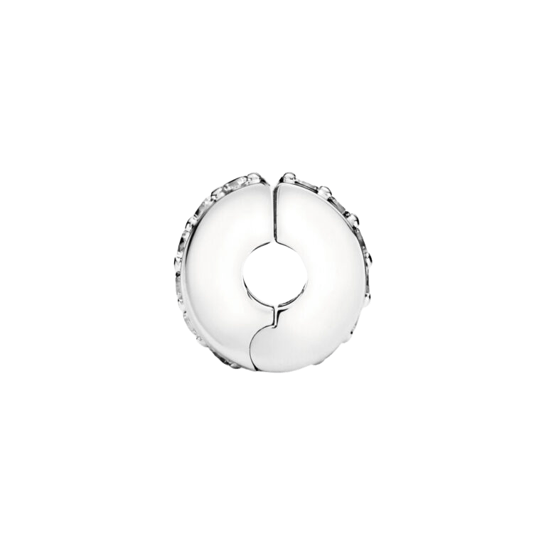 Los charms de clip de Pandora Moments te ayudan a separar de manera uniforme los charms, aportando equilibrio y belleza a las pulseras. Este se ha fabricado en plata de primera ley cuya belleza se realza con una fila de circonitas cúbicas organizadas alrededor del centro. Incluye una sola pieza en un estilo o una en cada extremo de tu pulsera para incluir detalles sutiles. Este charm de clip no posee agarre de silicona, por lo que se deslizará si no se lleva sobre las roscas dos separadores de charms elevados.