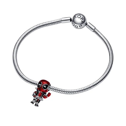 Rinde homenaje a un personaje valiente y tontorrón con el Charm Deadpool de Marvel. Deadpool de Marvel se presenta en plata de primera ley con esmalte de efecto metálico en técnica basse-taille que revela un patrón tejido debajo del traje de Deadpool. Los intrincados detalles dan vida a este charm, mostrando a Deadpool en acción con los dedos de la mano formando el signo de la paz. Ninguna colección de amantes de Marvel estará completa sin este charm que celebra al valiente y tontorrón personaje de Deadpool.