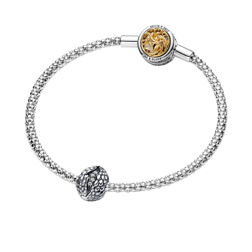 Lleva el Charm Huevo de Dragón Brillante de Juego de Tronos como símbolo de un potencial sobrenatural. Este charm en plata de primera ley se presenta con finos detalles que reflejan los huevos de dragón de Juego de Tronos. El charm incluye detalles como escamas de dragón con textura y una grieta de arriba a abajo decorada con gemas brillantes y microesferas. Tanto si regalas este charm a un amante de la serie como si lo llevas tú mismo, piensa en él como una armadura simbólica para hacer frente al mundo todos los días.