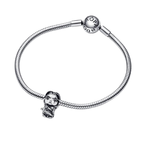 Lleva contigo la lealtad de tu casa con nuestro Charm Jon Snow de Juego de Tronos. Fabricado en plata de primera ley, el charm representa a Jon Snow con sus rasgos característicos, incluyendo la cicatriz en el ojo izquierdo, el bigote, su cabello rizado oscuro y su icónica capa con piel alrededor del cuello. Los detalles se resaltan con esmalte aplicado a mano que aporta profundidad de color. También lleva una espada con la cabeza de un lobo, el sello de lealtad y valor de su familia. Llévalo para apoyar al Rey del Norte o regala este charm de Juego de Tronos x Pandora a alguien especial.