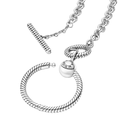Lleva tu historia cerca del corazón con el Collar con Colgante O Pandora en forma de T de Pandora Moments. Hemos combinado por primera vez dos joyas icónicas en un collar, para que puedas personalizarla con tu propia historia. Este collar admite hasta seis de tus charms favoritos, tres en la cadena y un máximo de tres en el pequeño Colgante O. El Colgante O se abre con un cierre de bola. La cadena se abre girando la barra en T. Para añadir charms, charms colgantes o colgantes, solo tienes que deslizarlos sobre la barra en T.