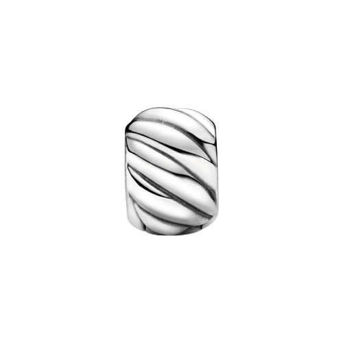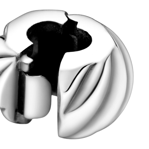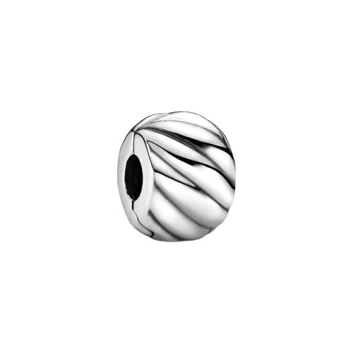 Añade una textura sutil a tu pulsera de Pandora Moments con este charm de clip en plata de primera ley decorado con líneas curvas que se asemejan a la delicada estructura de las plumas. Pulido con un alto brillo, este clip minimalista de Pandora es ideal para asegurar los charms de tu pulsera y evitar que se deslicen libremente. Llévalo con otros charms en plata de primera ley o combínalo con metales de contraste para canalizar la sensación de libertad que representan las plumas. Este charm de clip no posee agarre de silicona, por lo que se deslizará si no se lleva sobre las roscas dos separadores de charms elevados.