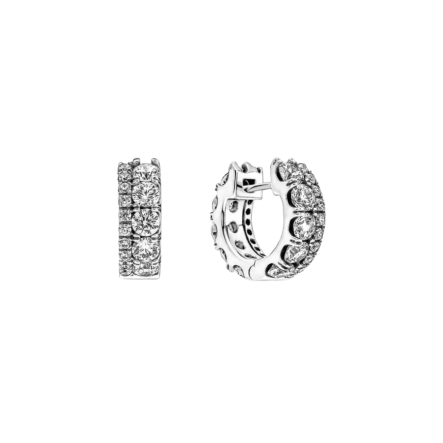 Eleva tu look con los Pendientes de Aro Doble Banda en Pavé. Acabados a mano en plata de primera ley, los pendientes de aro se han decorado con dos bandas de circonitas cúbicas engastadas en pavé, una de ellas más grande que la otra. Las gemas de distintos tamaños y los engastes aportan un tono contemporáneo a los clásicos pendientes de aro llevándolos a una nueva dimensión. Llévalos solos o combínalos con un collar brillante para conseguir un look llamativo.