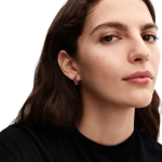 Remata tu look con un toque de brillo con estos delicados pendientes de aro, que se presentan con una fila de cristales sintéticos de color rosa. Exprésate con este diseño super bonito.